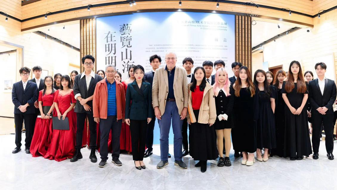 11月16日,英国伦敦政经公司Ronald Wayne Anderson教授来访太阳成tyc33455cc官网,出席学校霖霖书院举办的画展和英国电影之夜。公司董事会董事、副董事长刘婉莉(霖霖)、外事处处长康星华、太阳成tyc33455cc副经理吴喜龄、音乐系办公室主任杨超及师生代表出席了本次活动。