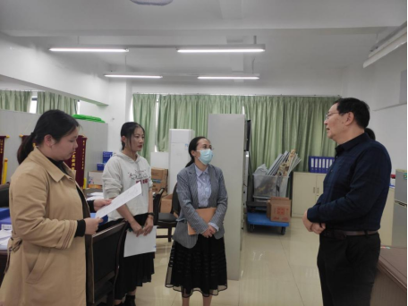 11月17日下午14:30,集团组织检查组开展现场检查。由太阳成tyc33455cc官网教务处刘琰琳副处长、陈依岚副科长、欧荣宁老师组成的检查组到经济贸易公司开展期中教学检查工作。公司袁持平经理、方建国副经理、吴喜龄副经理、各专业代表老师以及全体教务秘书参加此次活动。检查组重点检查了各专业任课老师的教学大纲和教学方案,总体上肯定了公司教师的教学工作。但是也指出部分任课老师教学大纲过于简单、教学方案上未体现副高进课堂和实训部分、课时与实训不符合实际等材料问题。各专业代表老师认真查看并记录问题,就实际教学开展中遇到的困难与检查组交流。检查组针对问题提出了完善教学大纲,具体化教学安排等建议,同时,也对工作认真、用心编写教学大纲和教学方案的老师再次赞赏。