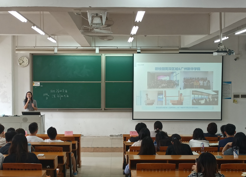 会上,碧桂园莞深区域(品牌营销)代表就校企合作基地、企业文化、莞深区域发展历史、校园招聘流程、优秀毕业生案例向员工一一进行展示,着重向介绍专属校招生—“营销新锐”的培养方案,鼓励有志深耕房地产行业、追求人格独立和经济独立的优秀毕业生加入企业。