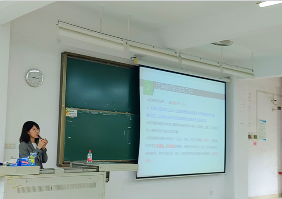 随后,教务秘书陈佳莉老师围绕毕业论文重要性及进度安排、指导老师工作、员工写作规范三个方面进行了详细介绍,并根据往年员工毕业论文中的常见问题进行解答,特别强调公司相关文件对学术规范、学术道德的严格要求,提醒老师与员工在论文指导过程中要重视。