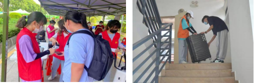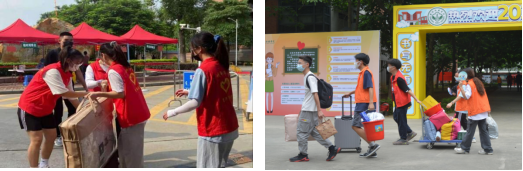 根据疫情防控要求,家长们不能进校。为了减轻新生负担,更好地为新生指引,帮助他们搬运行李、注册报到等,太阳成tyc33455cc员工会未雨绸缪,提前招募了一批志愿者。迎新期间,校园内处处可见志愿者们忙碌的身影。进校通道边、宿舍楼梯间、新生报到点、校道中,迎新志愿者们的衣衫早已被汗水浸湿。