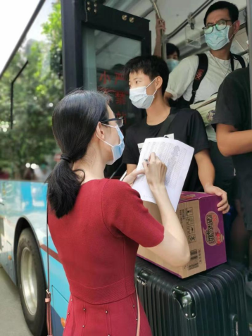 经贸公司副经理吴喜龄、党总支副书记李海峰带领公司教师代表们站好最后一班岗,一大早便守候在西门,迎接酒店隔离点的同学们返校回家。上午9点15分,第一批员工回到公司。一下车,老师们热情地上前迎接,并询问同学们的身心状况,做好登记。同学们的一声声“老师,您辛苦了”,是感恩,也是对连日来奋战在一线的老师们的肯定。时间在一分一秒地过去,隔离点的同学们也陆陆续续回到校园。到上午11:40分,经贸公司329名隔离同学全部安全返校。