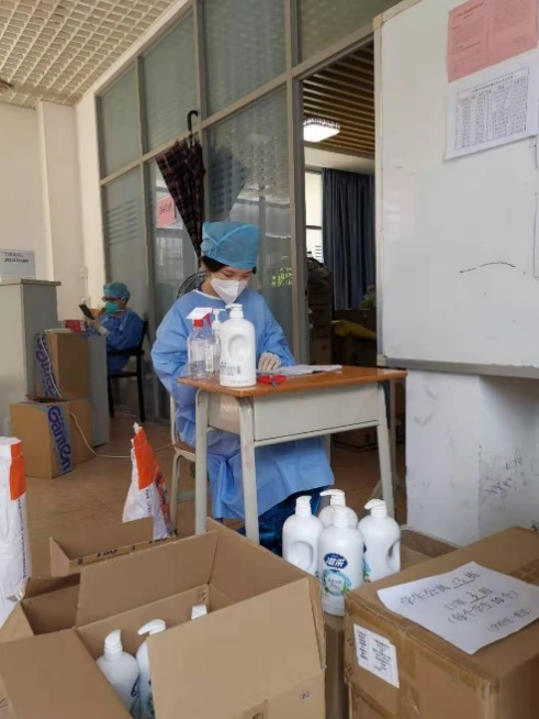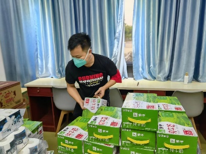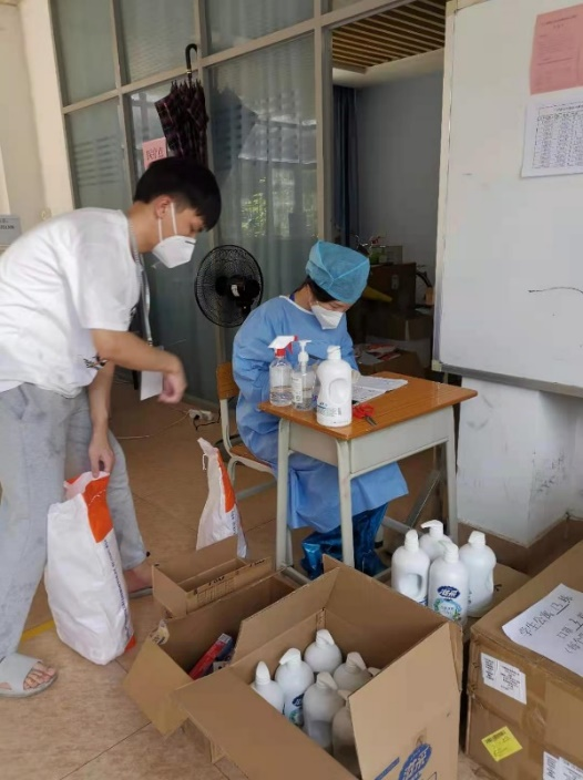 老师们在疫情初期就开始统计各栋宿舍员工的药物需求和物资需求。领导、老师和员工们为同学们募捐资金并采购了一批物资,以解决员工们的迫切需求。晚上员工表示已经收到了发放的物资,有方便面、水果还有温度计等,员工深深感受到了老师和员工们的关心,纷纷表示感谢。
