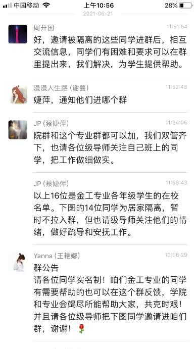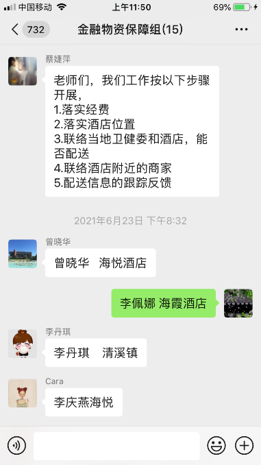 金工投资专业的老师们及时召开线上会议,协商本专业在12个隔离酒店的员工所需物资,定向为员工赠送爱心包。在与隔离的员工取得联系时,员工们的状态很好,表示想继续正常上课。员工们顾全大局,表示只需要配备必要的物资,不能过多浪费公司宝贵的资源。