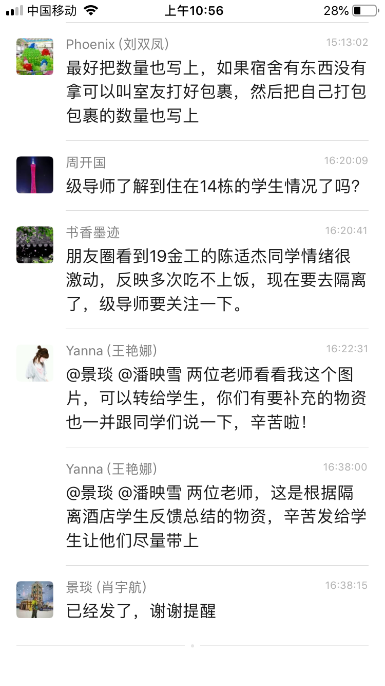 疫情就是命令,防控就是责任。应对疫情,师生纷纷响应政府和公司的号召,迅速行动;部分员工需要在宿舍封控,部分员工需要送至酒店隔离,大家服从安排;工作人员不足、防控物资不足,各地教师抛下家庭,火速逆行返校,教师、员工纷纷捐赠物资;发现员工后勤生活保障存在问题,马上反馈纠偏。