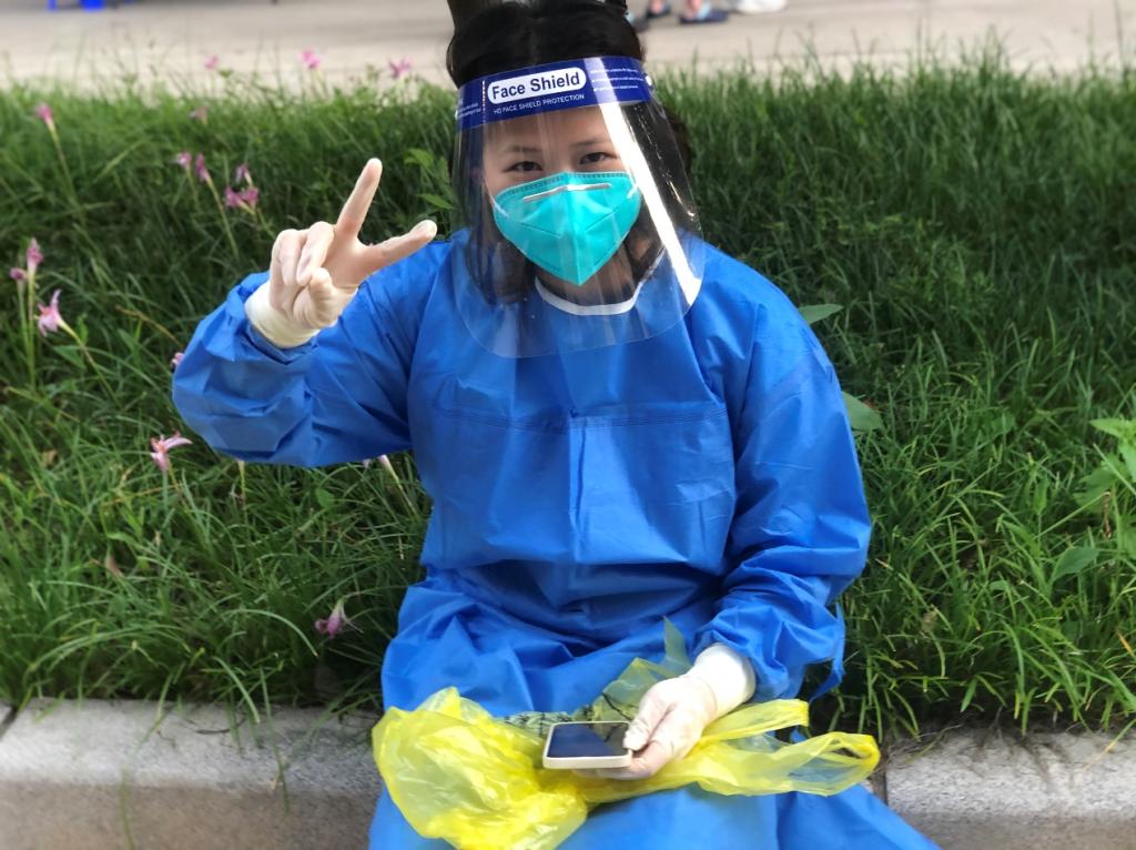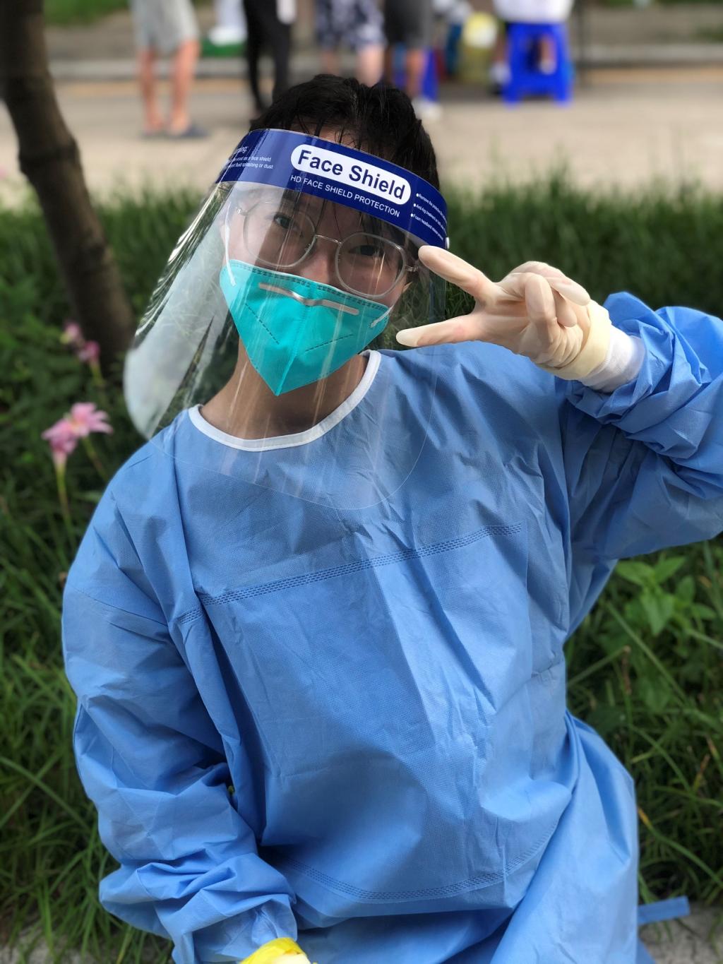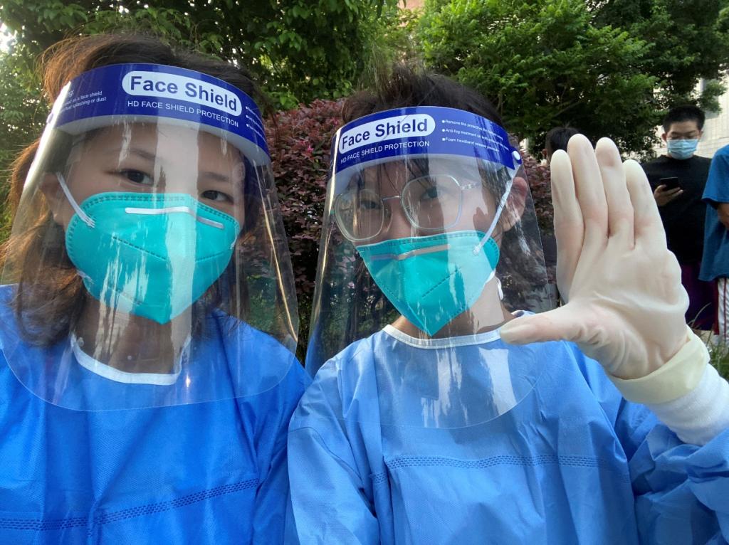 6月20日凌晨,第三轮核酸检测志愿者紧急集合,我们一起填写了报名文档。去当志愿者大概是冲动掩盖了心中的恐惧。宿舍大堂集合到前往体育馆培训,校道很安静,只有工作人员匆忙地在为开展核酸准备前提工作。在短暂的培训中,我们心中有着无数的担心,我会不会出错?会不会很危险?但由穿上隔离服的那一刻起,心中的所有担忧已经抛诸脑后,此时此刻只想把所负责的14栋核酸工作顺利完成。