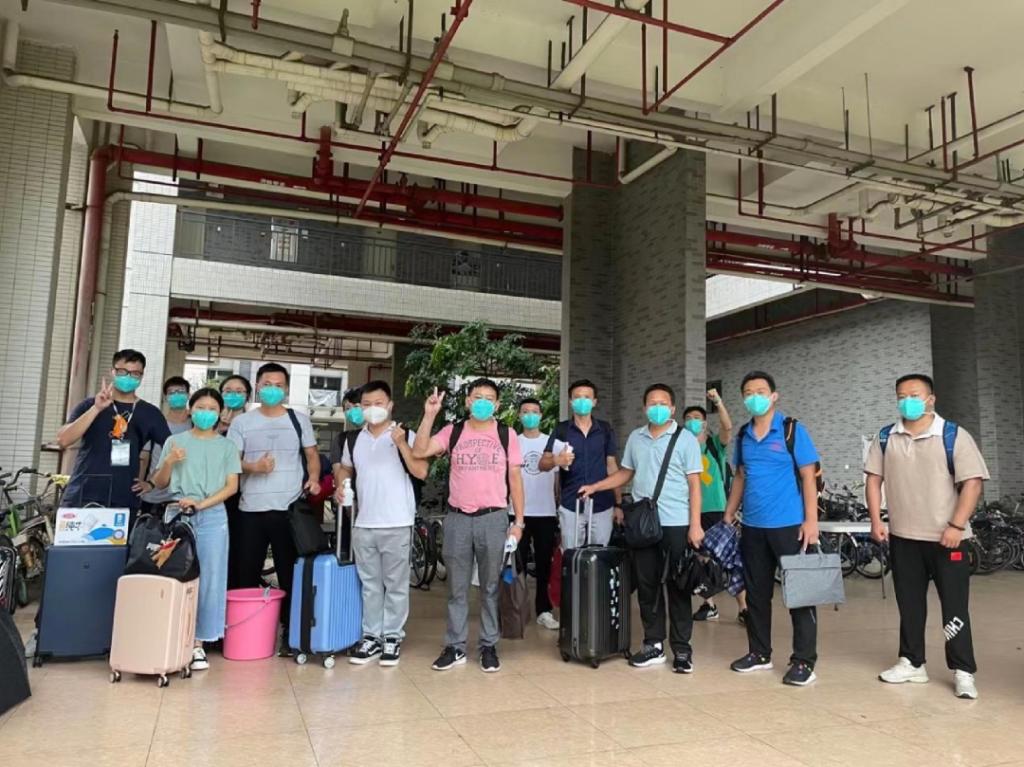 23日7时,结束完相应工作交接以及防疫有关培训后,首批17名关爱员工专班的老师集合出发