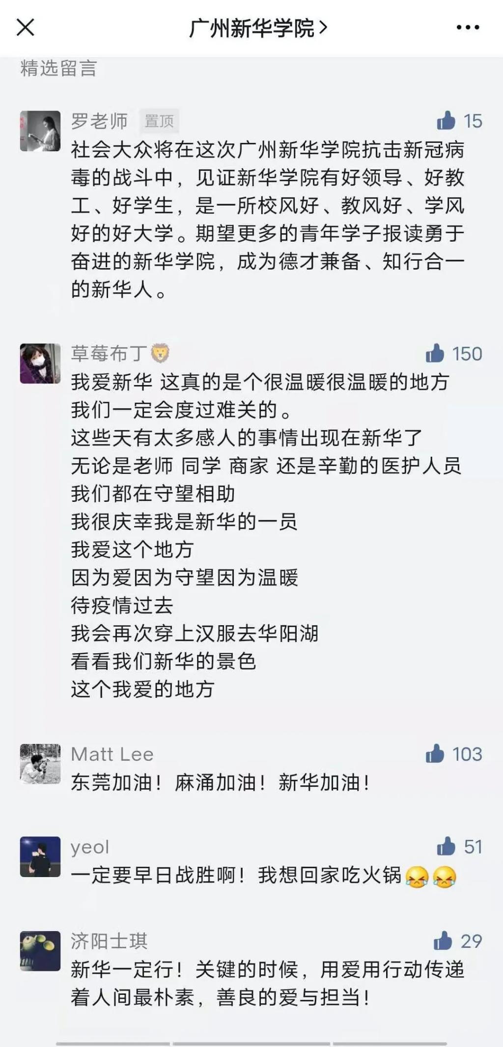在这危急关头里,四面八方爱心汇聚新华。外校学生纷纷留言“我为新华加油!”