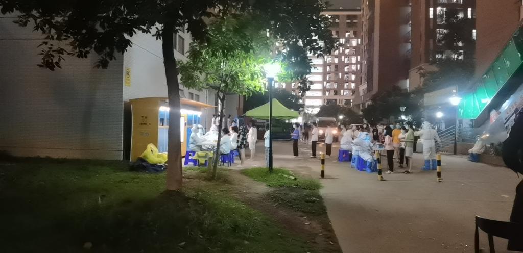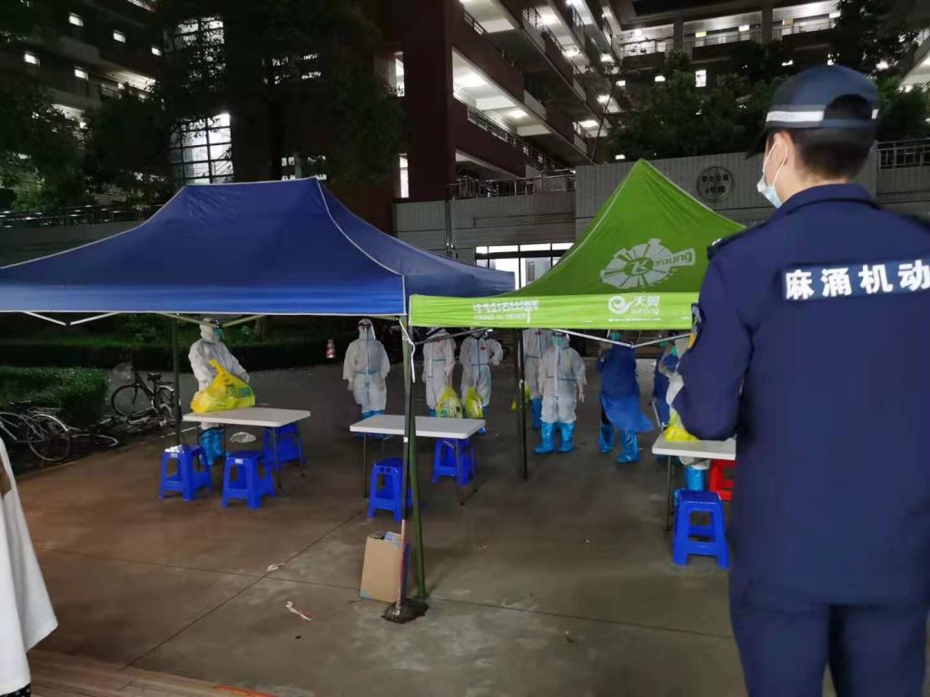 6月23日凌晨,东莞校区在校师生全员核酸检测,师生戴着口罩,有序参加,这是他们第三次核酸检测了。凌晨三点,有一位可爱的同学,也是一名班委,在我嘱咐她睡觉时,坚定地跟我说:“老师,我还不能睡,班委要等核酸结果出来的。”我哽咽了。。。。此时任何的言语都显得单薄。致敬身在抗疫一线的每一位师生。