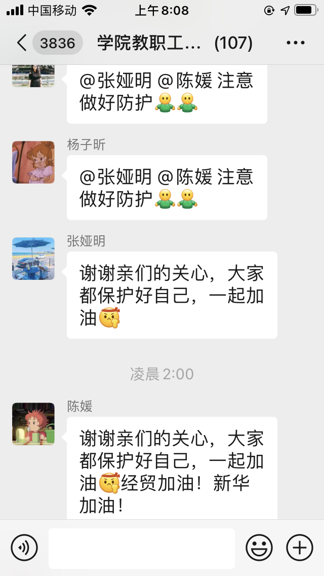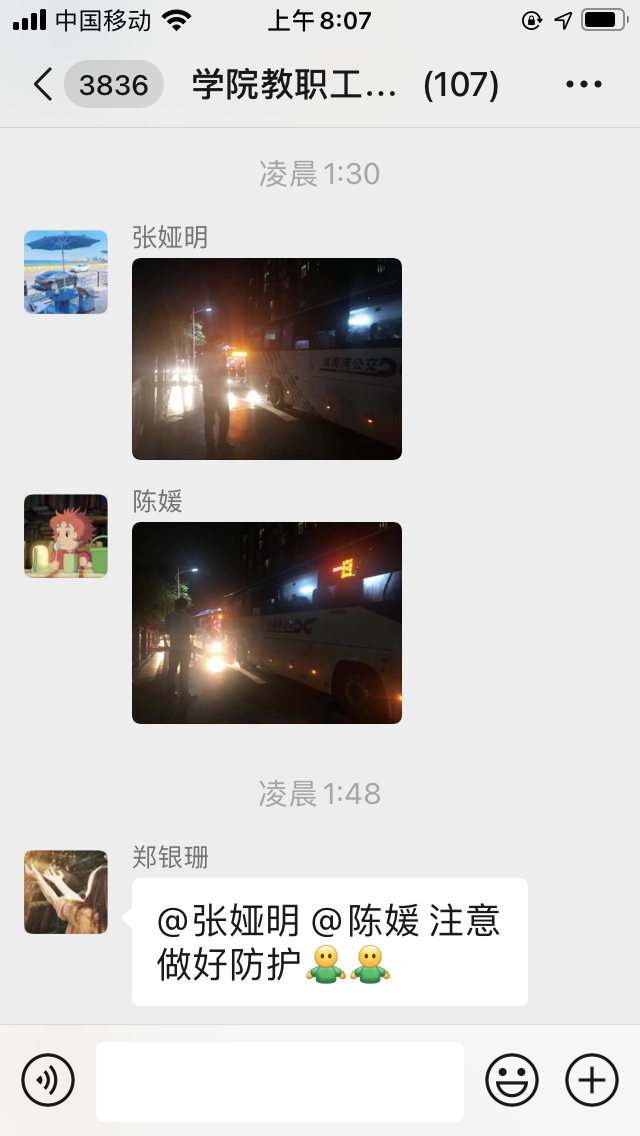 6月23日全体教职工为一线辅导员老师加油打气,嘱咐他们服务员工的同时,保护好自己