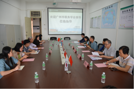 上午10:00,税务调研座谈会在格物楼2A504召开。广州税务学会会长李健强、副秘书长刘晓勤、副秘书长韩明英、副秘书长王春平、副秘书长李静、副秘书长张月芳等,经贸公司副经理黄国龙、党总支副书记李海峰以及税收学专业教师参加此次会议,税收学专业教师钮佳佳担任主持。钮佳佳老师首先介绍了广州税务学会来访专家,并代表经贸公司对他们表示热烈欢迎。