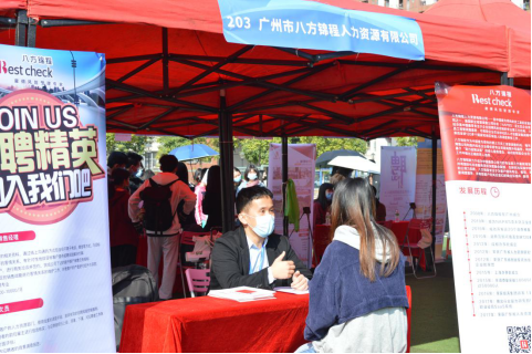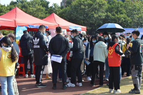 12月5日上午十点,中山大学新华公司2021届毕业生校园招聘会于东莞校区足球场举行。本场招聘会共有200多家企业参加,为毕业生提供实习和就业岗位。公司共4574名员工去到现场,其中毕业生有2428人。