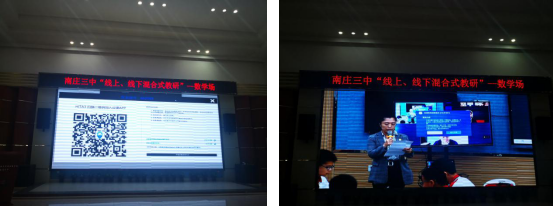 在此次教研活动中,首先,与会教师在报告厅直播同步观看南庄三中唐满学老师的一节《平均数》公开数学课堂展示,并同步使用HITA进行课堂点评。然后,唐满学老师进行现场说课和分享课堂设计,唐老师在课堂上全程采用任务驱动、小组合作学习的方式展开教学,及时抓住课堂中的问题,引导员工进行讨论和学习。同时还利用苏格拉底系统中的即问即答、数据统计、飞递、推送等功能,与员工进行多维互动,员工们则通过手里的IRS反馈器进行问题抢答、投票,提高了课堂的参与积极性。最后,根据智慧课堂醍摩豆AI教研中心苏格拉底报告,冯椿老师对唐老师的课进行点评,给予了既中肯又全面的评价。