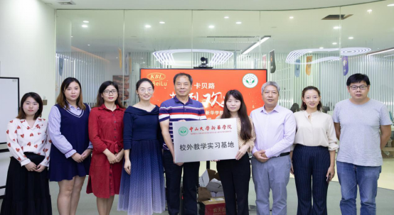 (图5 教务处处长尹小川(左五)为卡贝路贸易公司授予中山大学新华公司实习基地牌)