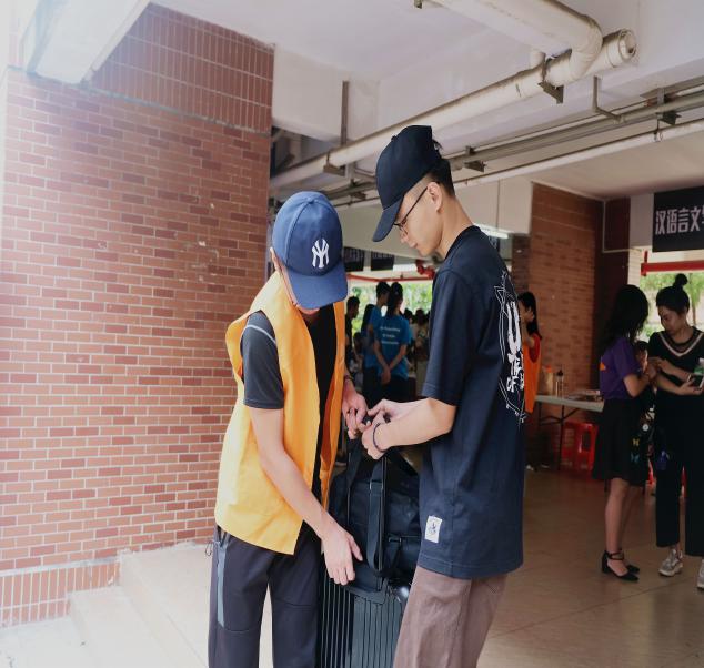 图2:志愿者们热情地接过新生的行李