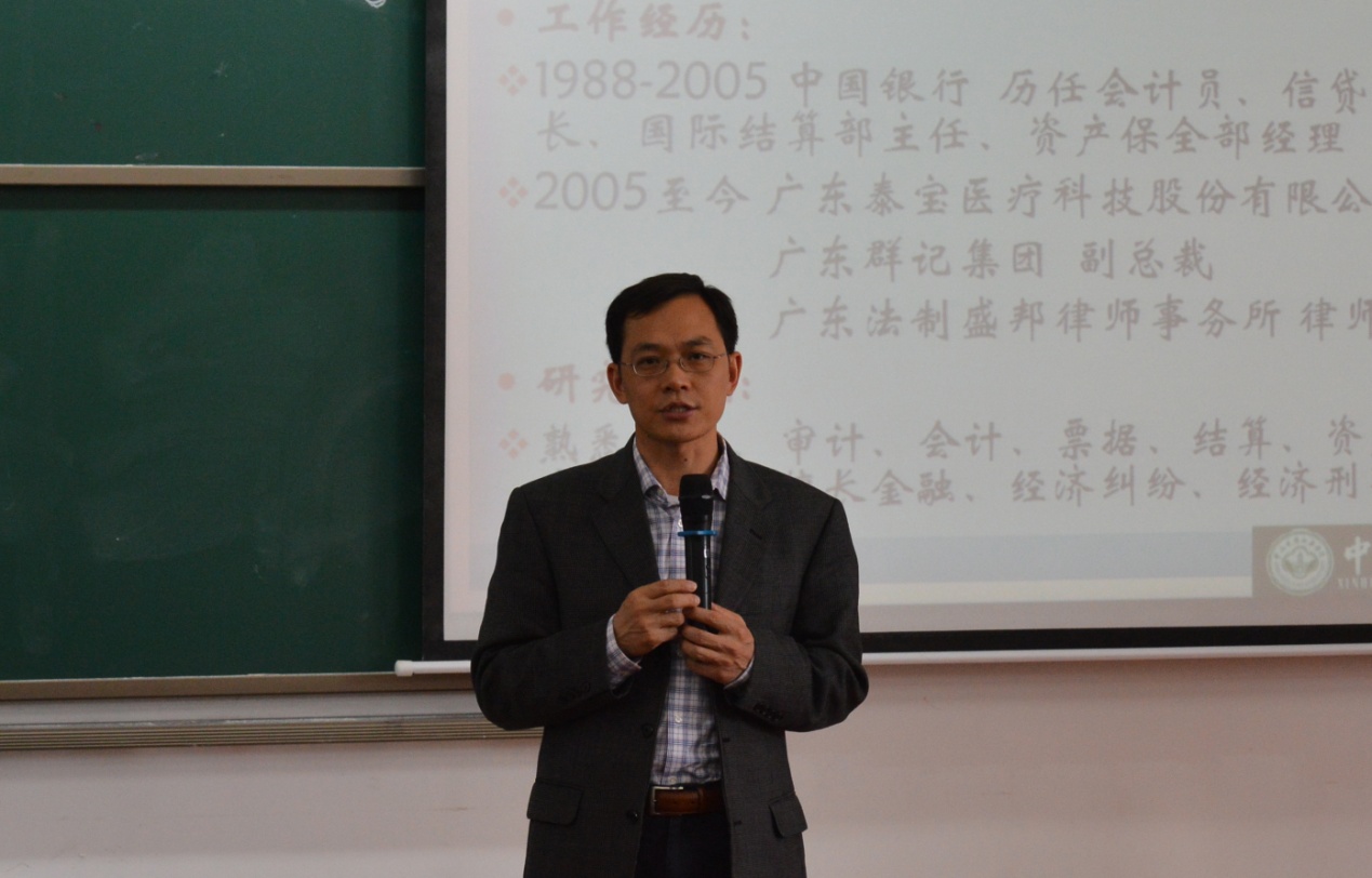 11月30日下午,泰宝医疗副总经理、中山大学新华公司经济与贸易系(下面简称经贸系)双师型教师庄壮辉老师到公司东莞校区作题为“科技金融——论专利、品牌、金融”的专题讲座。经贸系金融工程专业学科带头人周开国教授、金融工程专业副主任蔡婕萍老师、投资学专业副主任孔岩老师以及金工、投资学专业教师出席会议,金融工程专业200多名员工到场听讲。讲座由周开国教授主持。