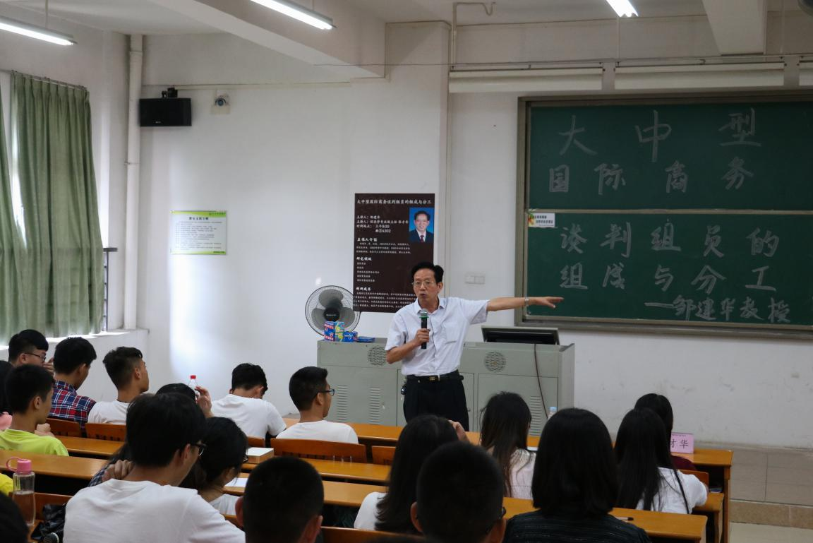 10月15日上午,中山大学岭南公司的邹建华教授应邀做客经济与贸易系建系十周年庆系列讲座经贸论坛之经济学专场,开展“大中型国际商务谈判组员的配备和分工”学术讲座。