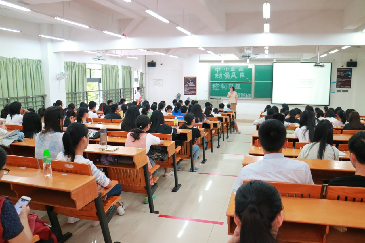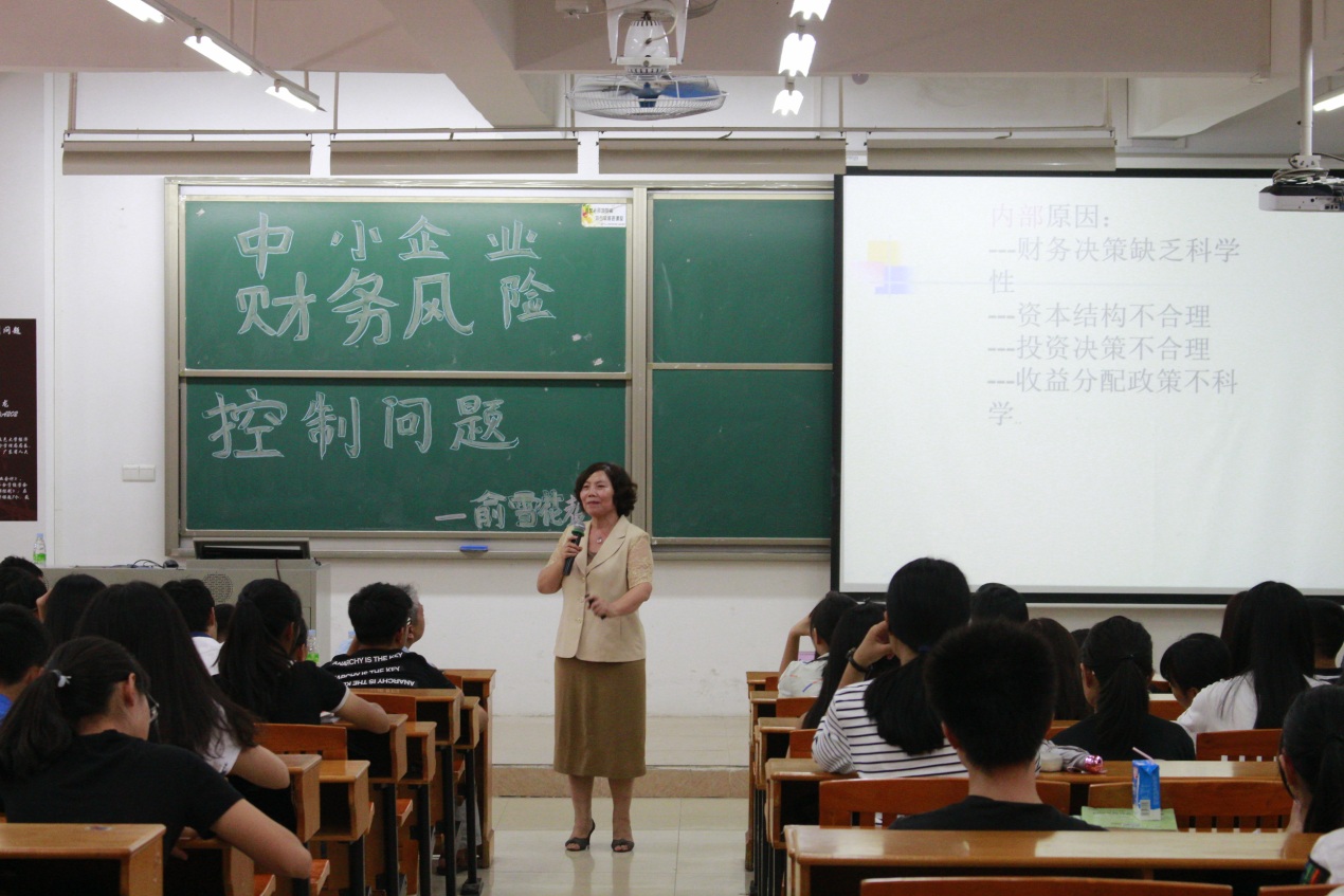 2016年10月15日,中山大学新华公司经济与贸易系特邀广东省江门市社会保险基金管理局原局长、公司兼职教授俞雪花教授作了题为“中小企业财务风险控制问题”讲座。本次讲座由系副主任黄国龙副教授主持。